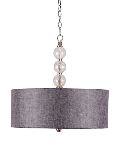 - Design details: 20in Diameter Gray Fabric Shade; 3-60 Watt Bulbs; 20in extender