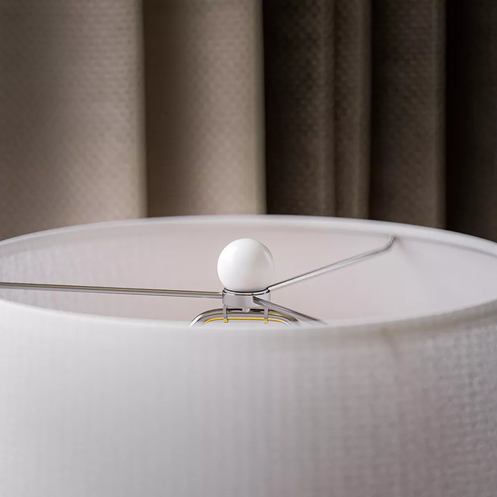 - White shade creates soft illumination.